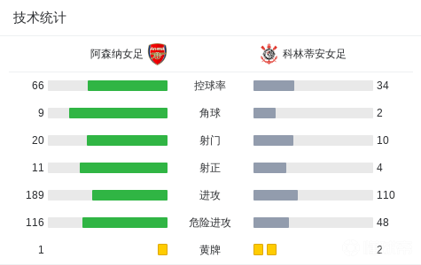 比赛进行到第15分钟,阿森纳女足率先破门,奥利维娅-史密斯打入一球,为球队取得领先。这个进球让阿森纳女足士气大振,球员们充满信心地继续展开攻势,试图扩大领先优势。而科林蒂安女足也没有示弱,他们加强了进攻,试图扳平比分。